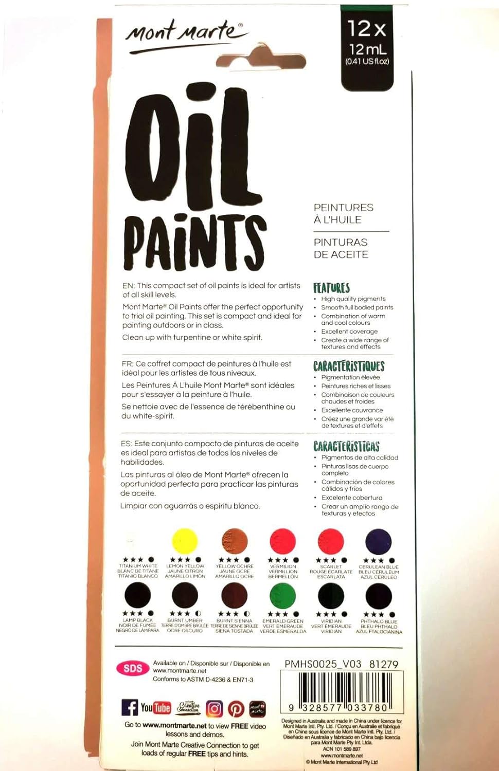 - MONT MARTE Oil Paint 12 pcs is an excellent gift for aspiring artists or a fantastic introductory set for beginners.