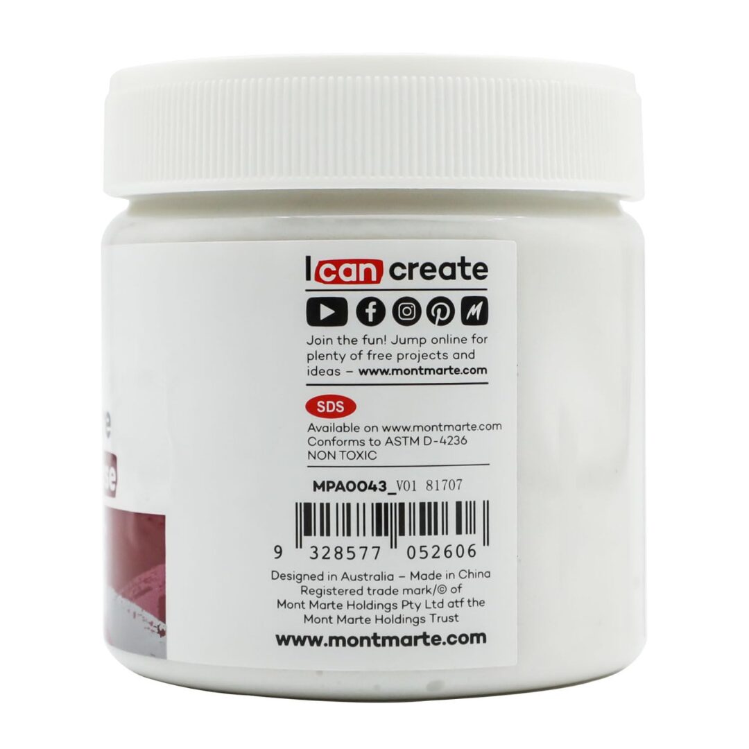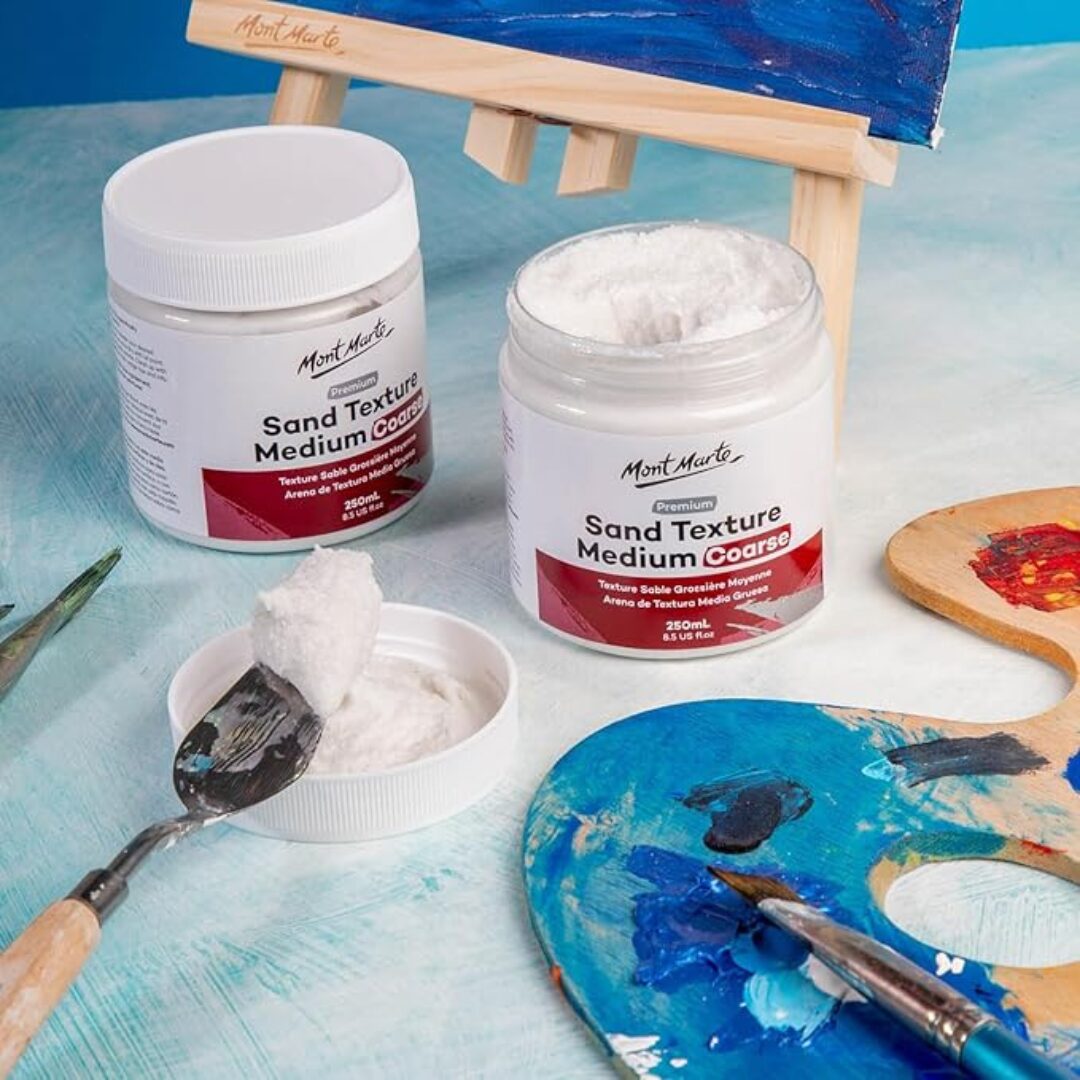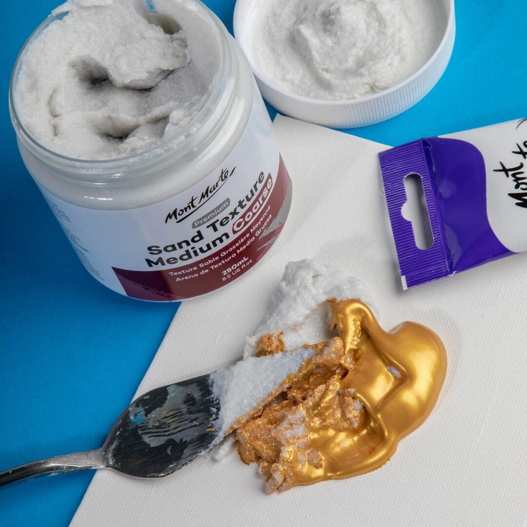 Create rich, coarse texture and 3D effects effortlessly with the Mont Marte Sand Texture Medium Coarse 250ml.