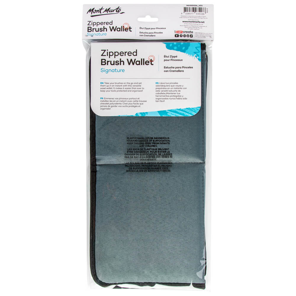 Mont Marte Zippered Brush Wallet Signature, a smart storage solution designed for artists who value protection, organisation and portability. This foldable brush wallet transforms into a convenient brush stand, making it ideal for studio sessions and outdoor painting. With space for 22 brushes or palette knives, this durable case keeps your tools safe, clean and ready for every creative project.