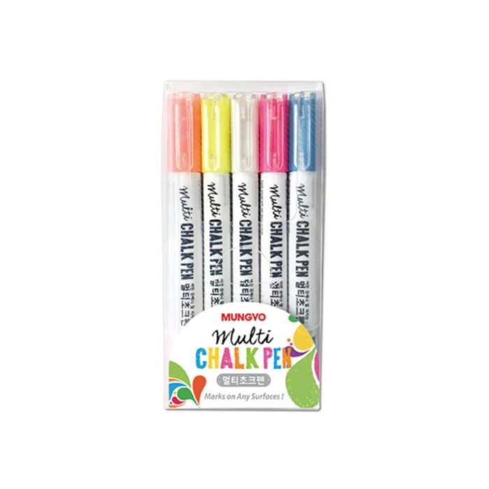 MUNGYO Multi Chalk Pen – Assorted 5 Colors is a premium erasable chalk marker set designed for smooth, vibrant, and dust-free writing on non-porous surfaces