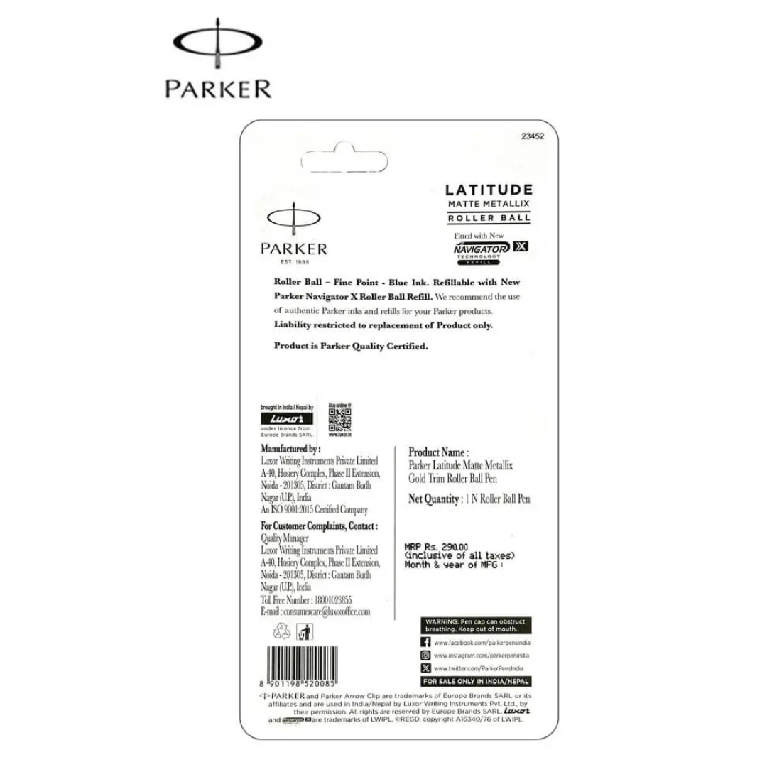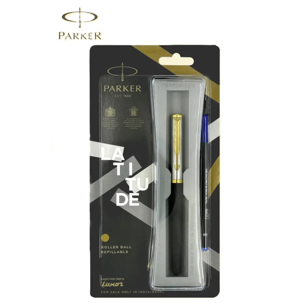 Parker Latitude Matte Metallix Roller Ball Pen with Gold Trim – Blue