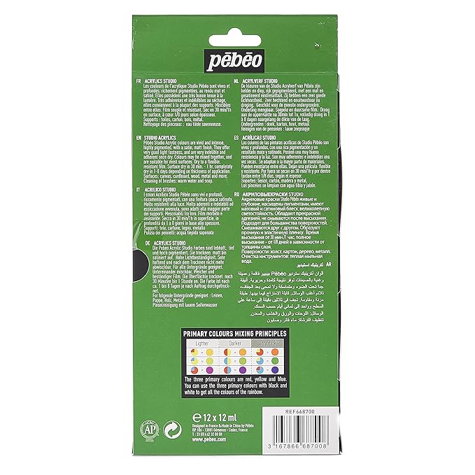 • Pebeo studio acrylics paint set 12 colours 12ml