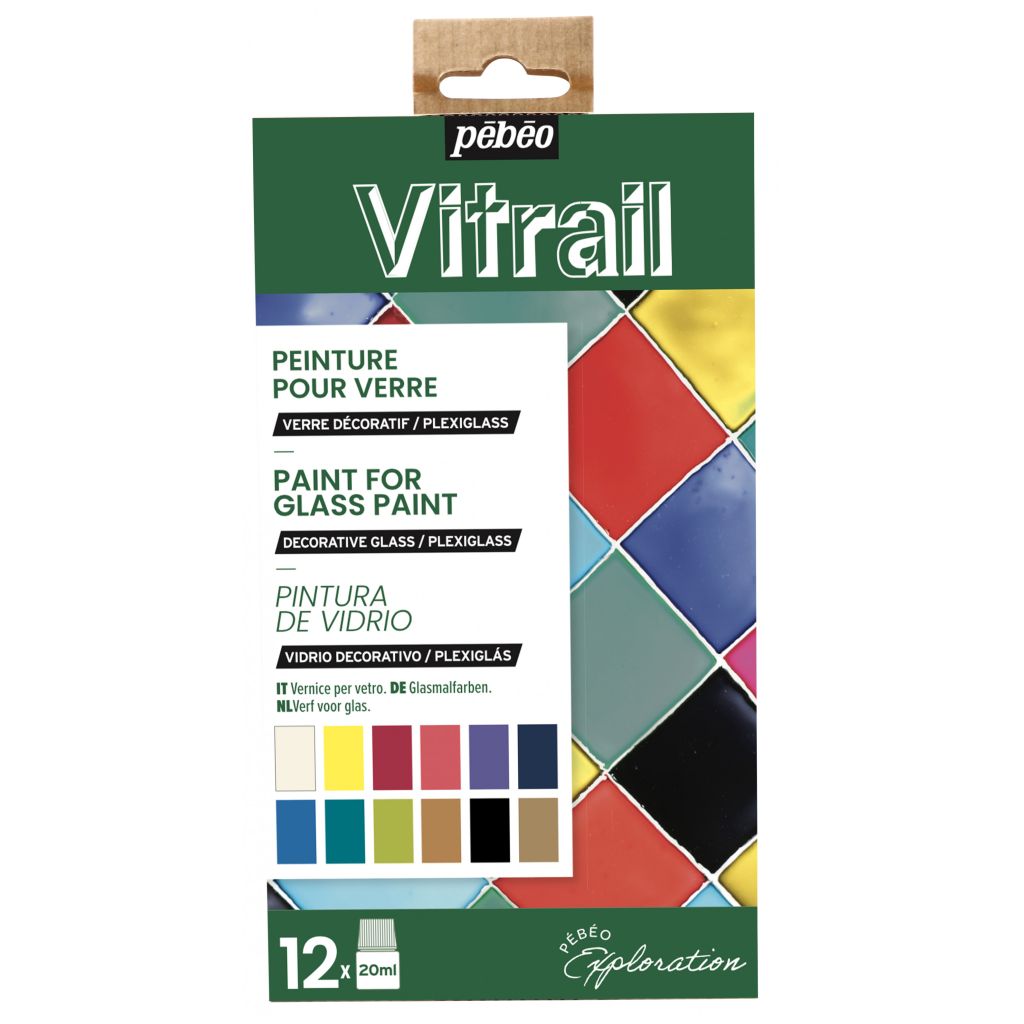 Pebeo Vitrail Glass Paint Set – 12 x 20ml (Exploration Set)