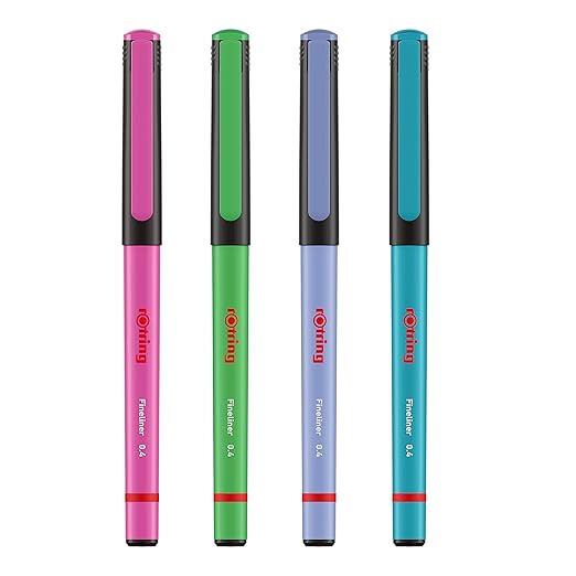 Rotring | Liner Fineliner Pens | Assorted Colours | Pack of 4 Pieces | 0.4mm