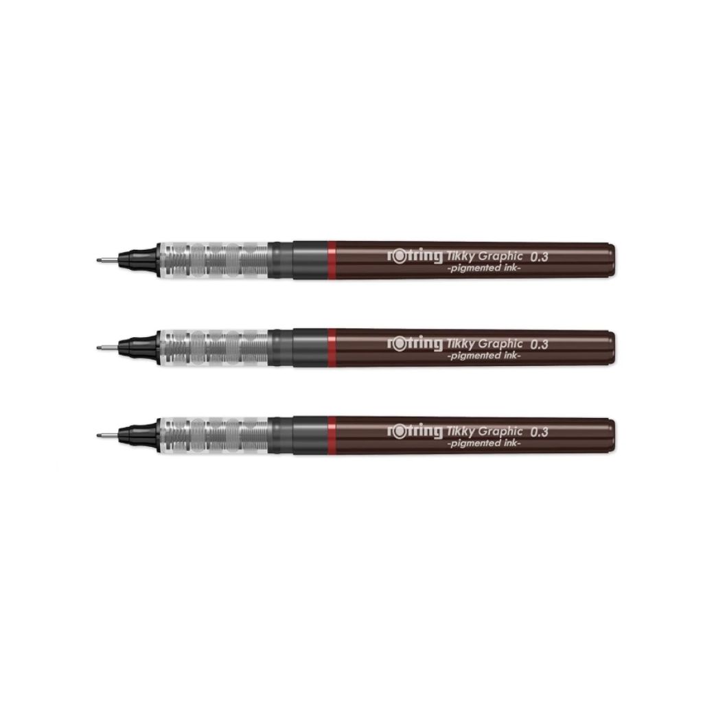 Rotring | Tikky | Graphic Fineliner | Black Pigment Lightfast | 0.3mm | 3 Pen Set