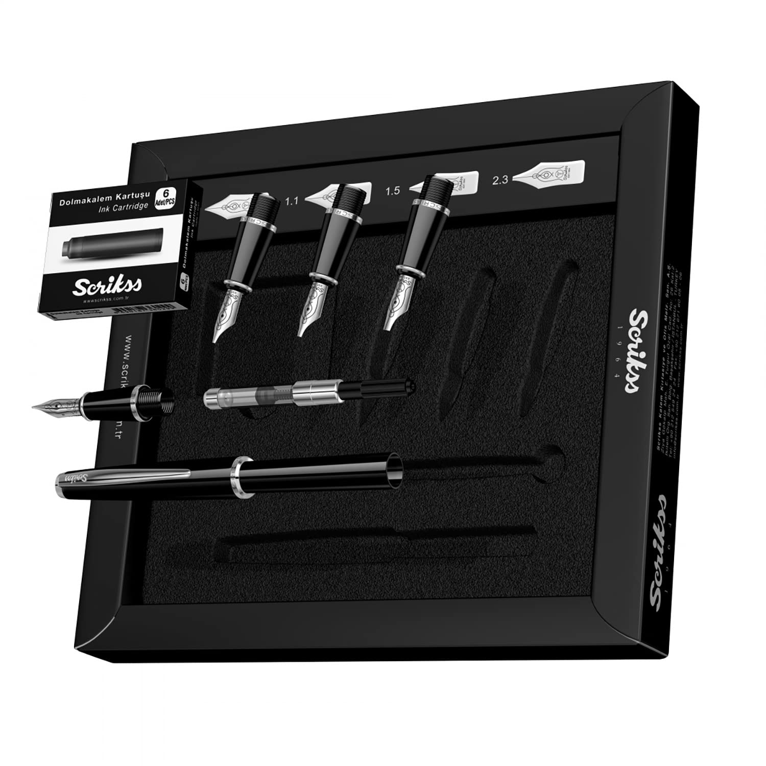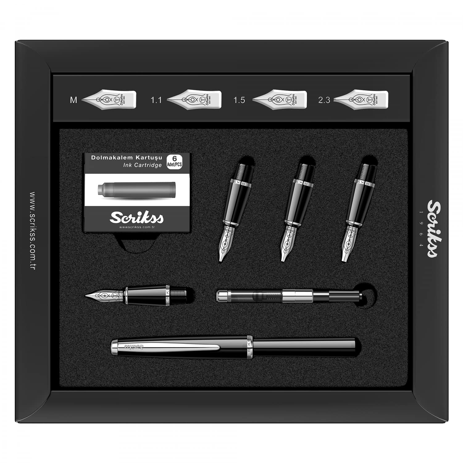 Scrikss | Calligraphy | Pen Set | Black | Medium, 1.1mm, 1.5mm, 2.3mm Nib