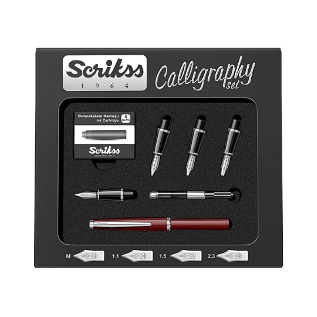 Scrikss | Calligraphy | Pen Set | Burgundy | Medium, 1.1mm, 1.5mm, 2.3mm Nib