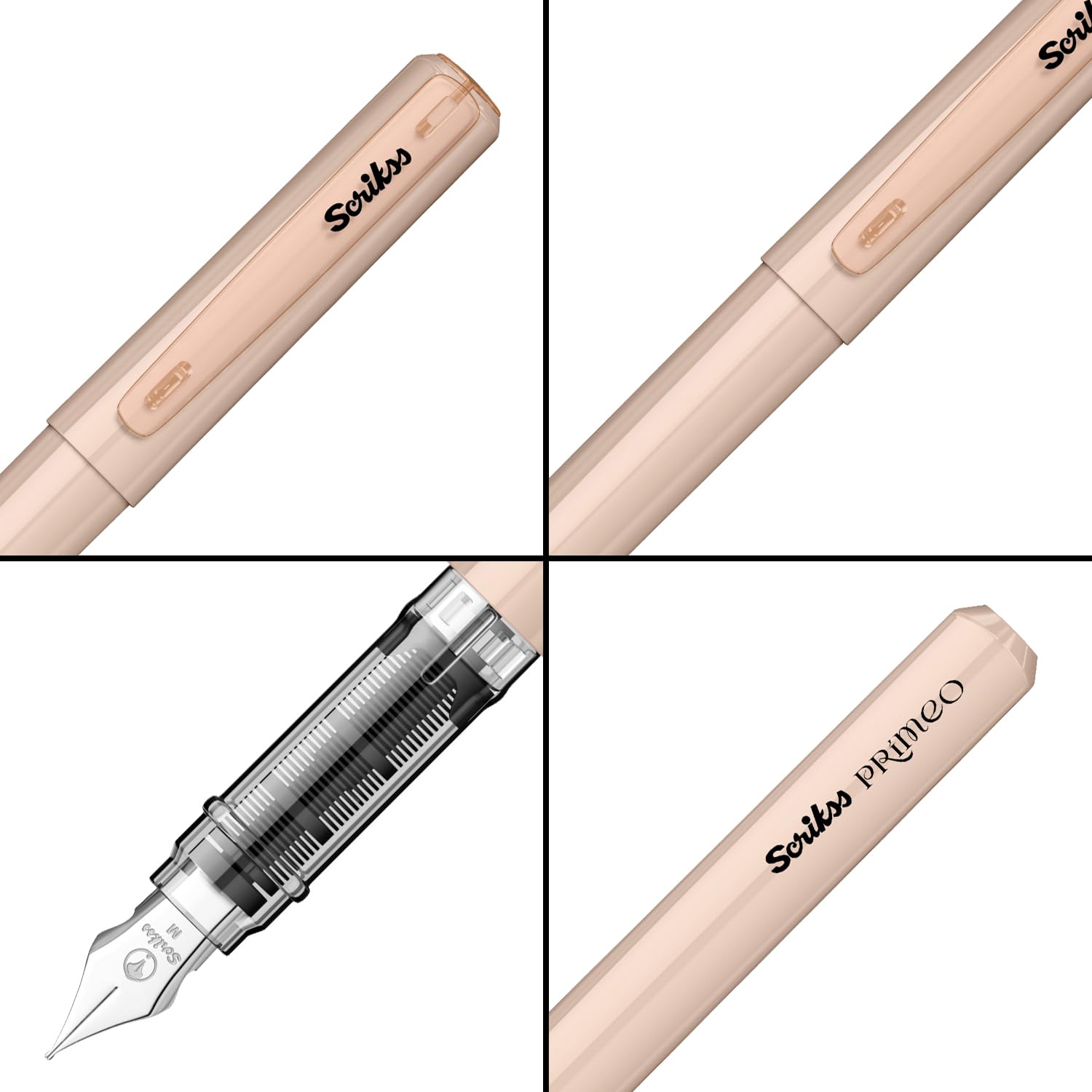 Scrikss Primeo Medium Nib Fountain Pen | 3 Cartridges Included | Stainless Steel Nib & ABS Body | Latte Pastel Brown| in Blister Pack