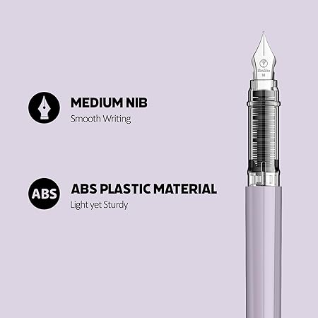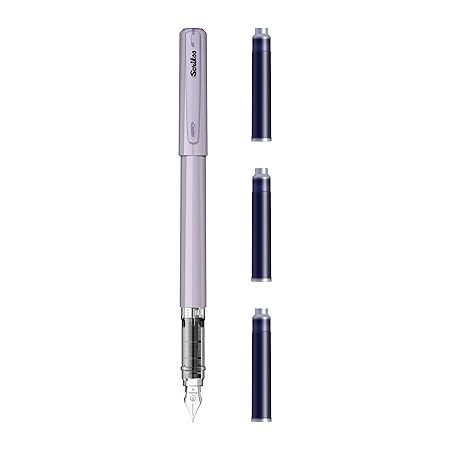 Scrikss Primeo Medium Nib Fountain Pen | 3 Cartridges Included | Stainless Steel Nib & ABS Body | Lilac | in Blister Pack