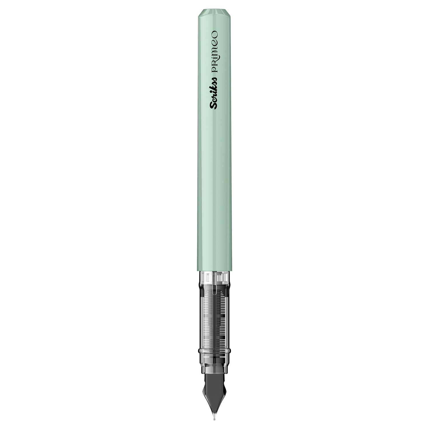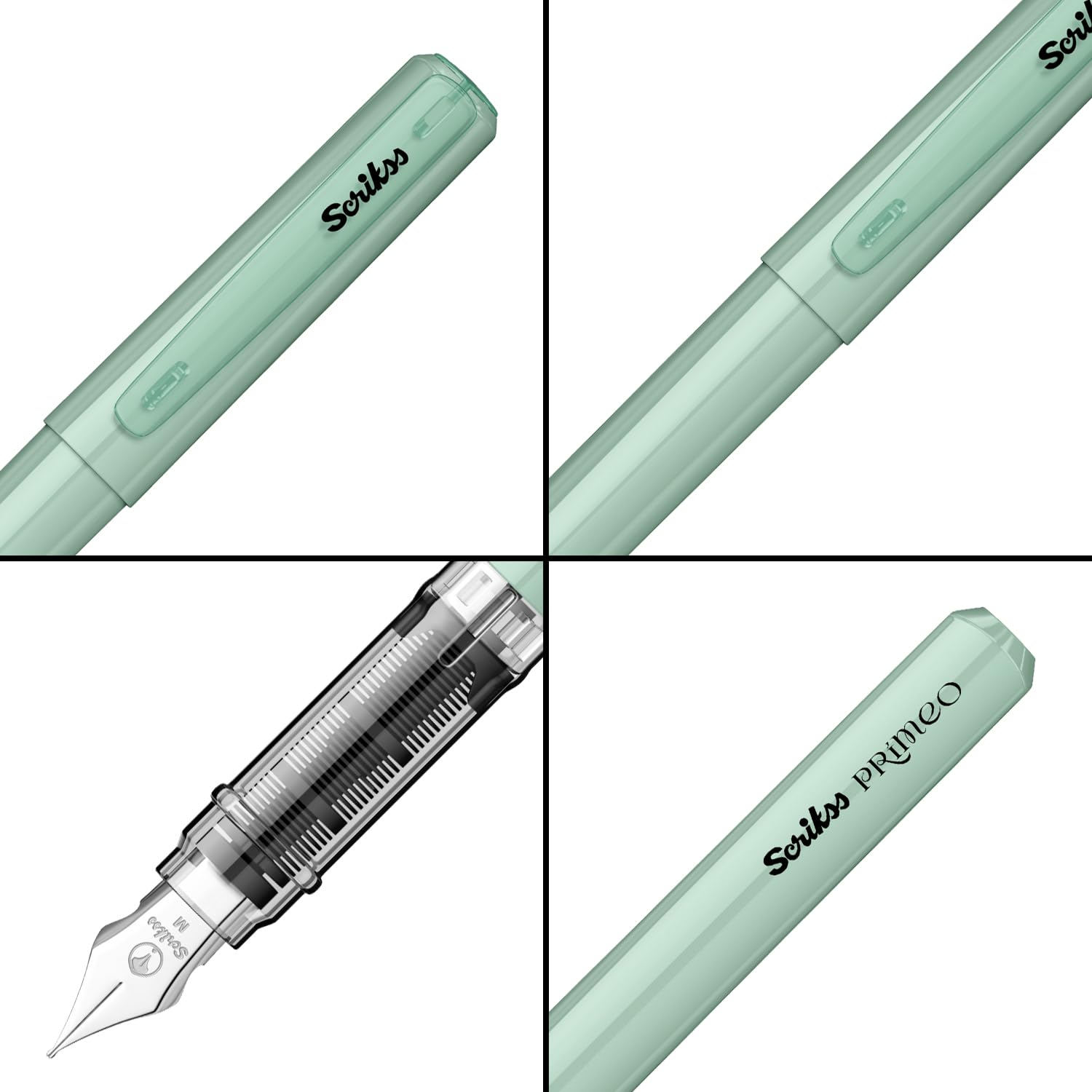 Scrikss Primeo Medium Nib Fountain Pen | 3 Cartridges Included | Stainless Steel Nib & ABS Body | Mint | in Blister Pack