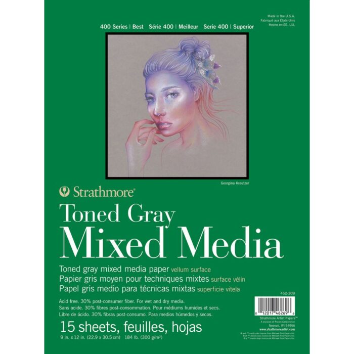 Strathmore 400 Series Toned Gray Mixed Media Pad – 9″ x 12″, 300 GSM, 15 Sheets