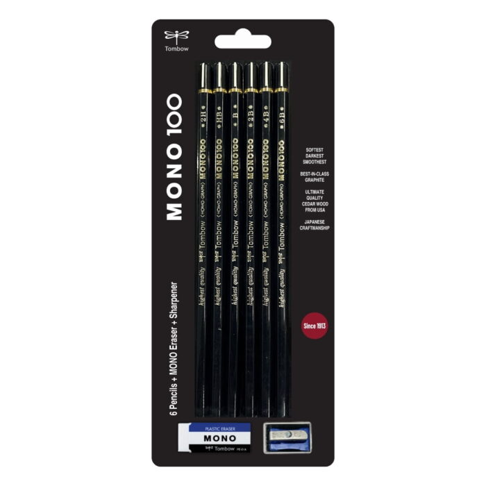 Includes 6 MONO 100 pencils in essential grades: 2H, HB, B, 2B, 4B, 6B